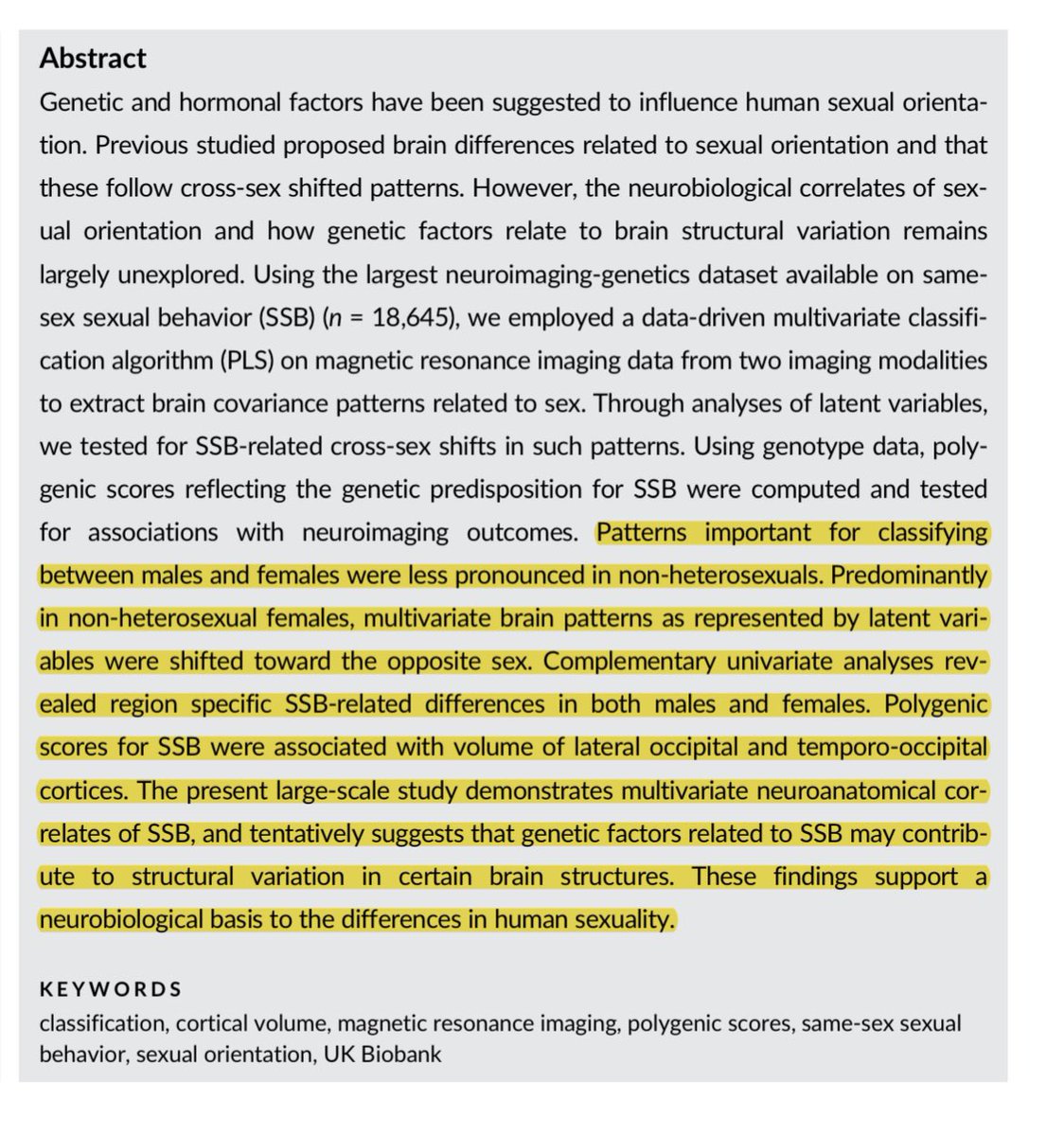 لكن هذا ليس العامل الوحيد هناك عوامل نظريا مطروحه مثل شكل الدماغ لدى المثليين