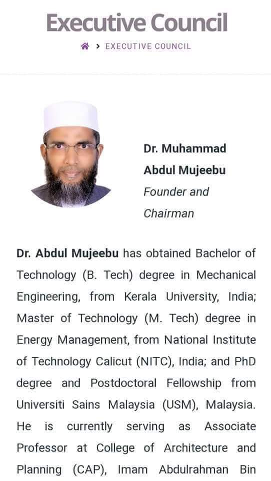 حصل على بكالوريوس في التكنولوجيا في الهندسة الميكانيكية ، من جامعة كيرالا ، الهند ؛ درجة الماجستير في التكنولوجيا في إدارة الطاقة ، من المعهد الوطني للتكنولوجيا كاليكوت ، الهند ؛ درجة الدكتوراه والزمالة وما بعد الدكتوراة من Universiti Sains Malaysia (USM) ، ماليزيا. يعمل حاليًا كأستاذ مشارك في كلية العمارة والتخطيط ، جامعة الإمام عبدالرحمن بن فيصل ، الدمام ، المملكة العربية السعودية. ، فهو رئيس لجنة الاعتماد الأكاديمي والبحثي بالكلية.
