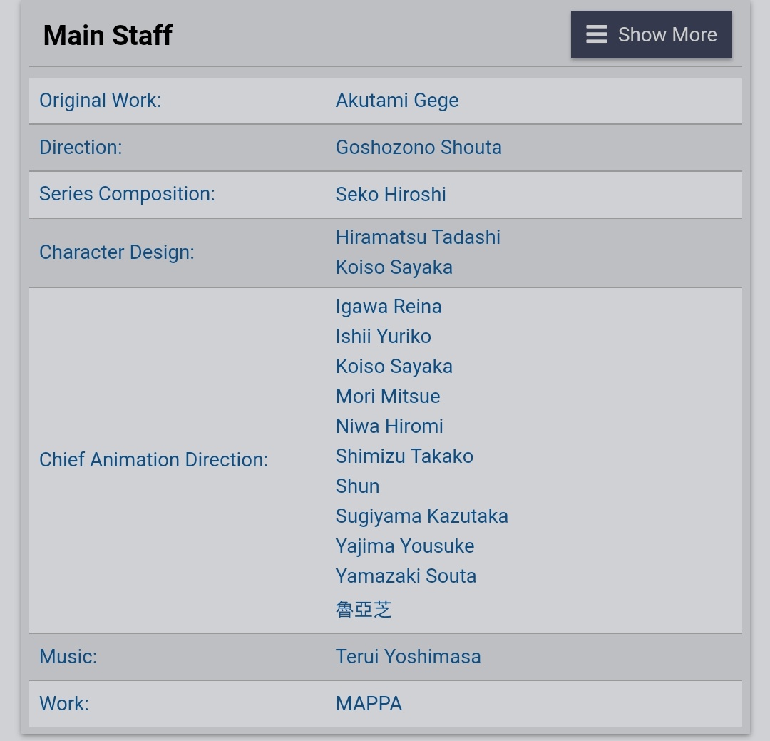 توجد العديد من المواقع الخاصة بالانمي للبحث عن ستاف العمل أو عن حلقة معينة، لكن أغلبها يكون غير شامل وبه معلومات ناقصة