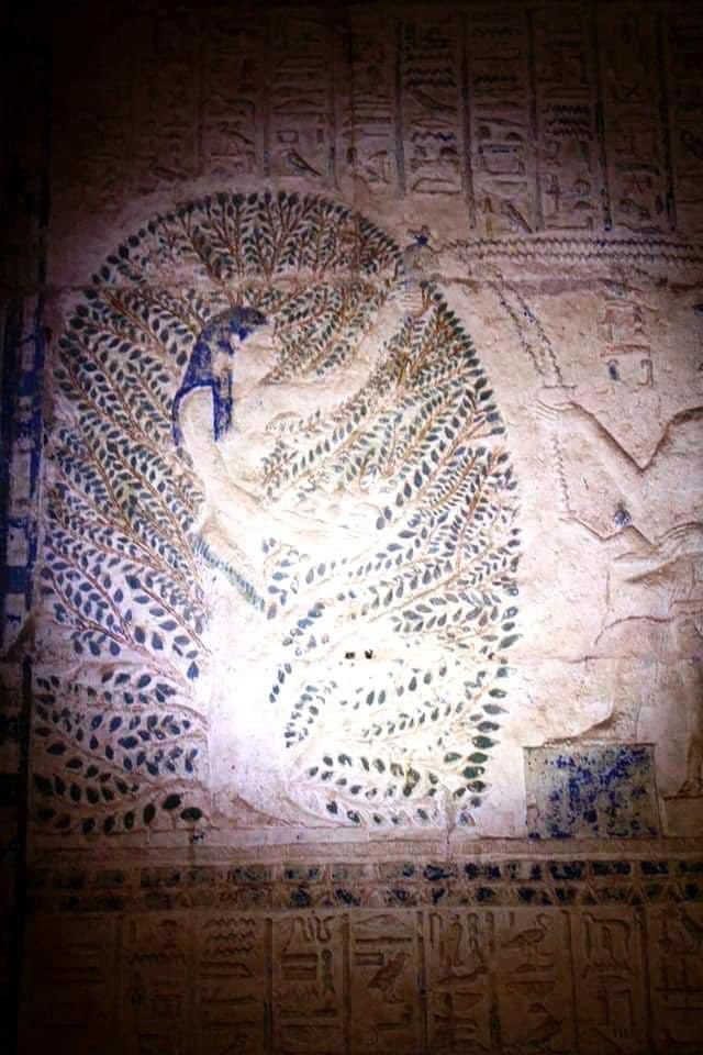 شجرة ضخمة علي أوزوريس واسعة الظلال حافظت على التابوت المقدس.