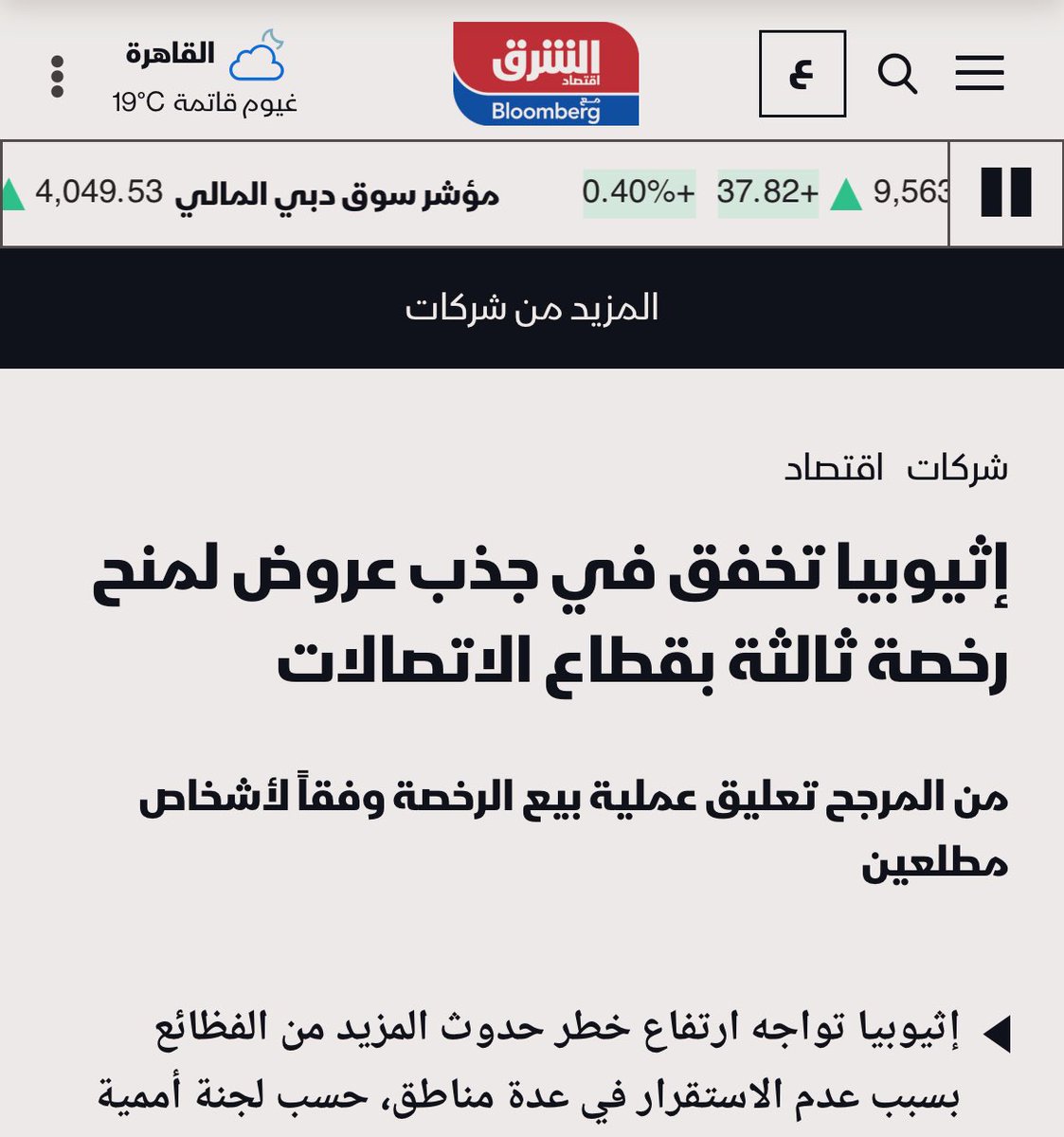 معروف إن قطاع الاتصالات هو تاني أكبر قطاع استثماري في أثيوبيا، وهو الجائزة الكبرى لمسيرة رئيس الوزراء أبي أحمد لتحريرالاقتصاد بعد وصوله إلى السلطة ف2018