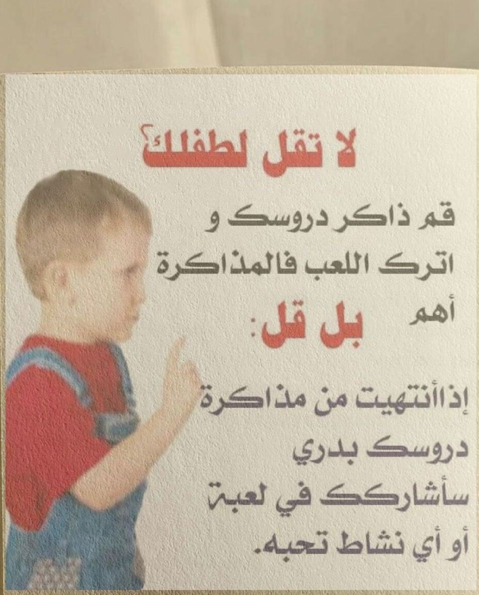 قم ذاكر دروسك وترك اللعب فالمذاكره اهم