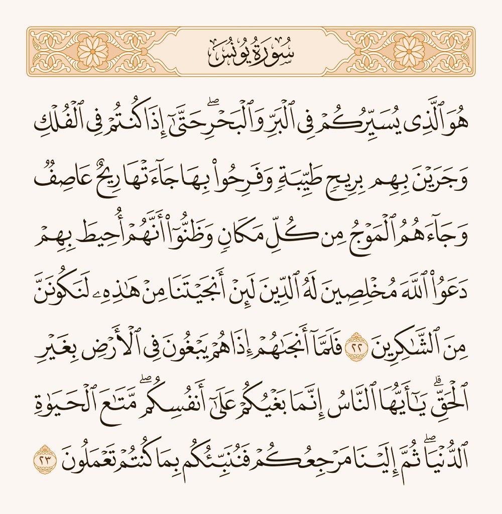 ﴿وَإذَا غَشِیَهُم مَّوجࣱ كَٱلظُّلَلِ دَعَوُا ٱللَّهَ مُخلِصِینَ لَهُ ٱلدِّینَ فَلَمَّا نَجَّىٰهُم إلَى ٱلبَرِّ فَمِنهُم مُّقتَصِدࣱۚ ومَا یَجحَدُ بِـَٔایَـٰتِنَاۤ إلَّا كُلُّ خَتَّارࣲ كَفُورࣲ﴾