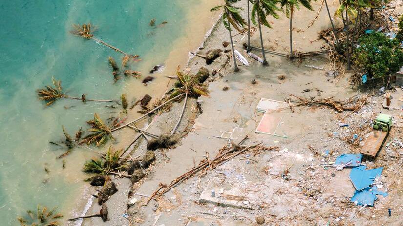 1️⃣- لحظة وصول موجات التسونامي لليابسة