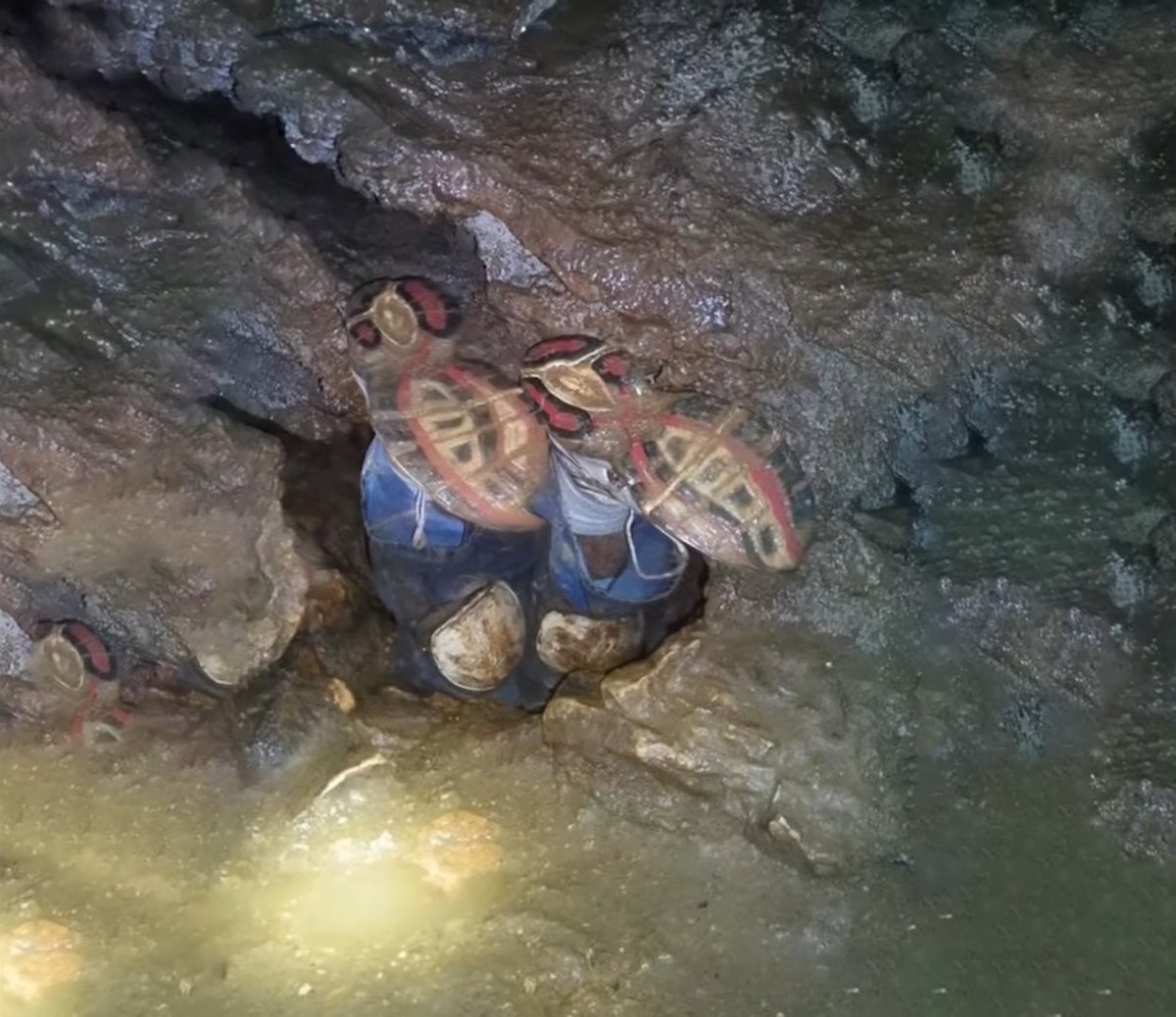ربطت حبل حول رجليه، وحاول فرق الانقاذ في نهاية الممر سحبه