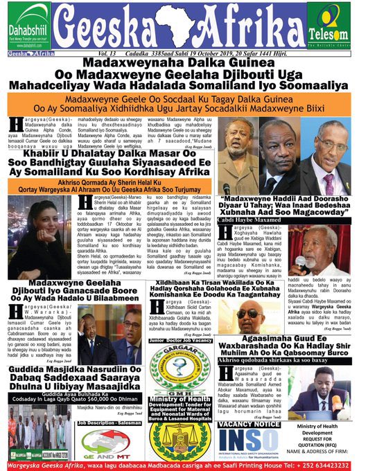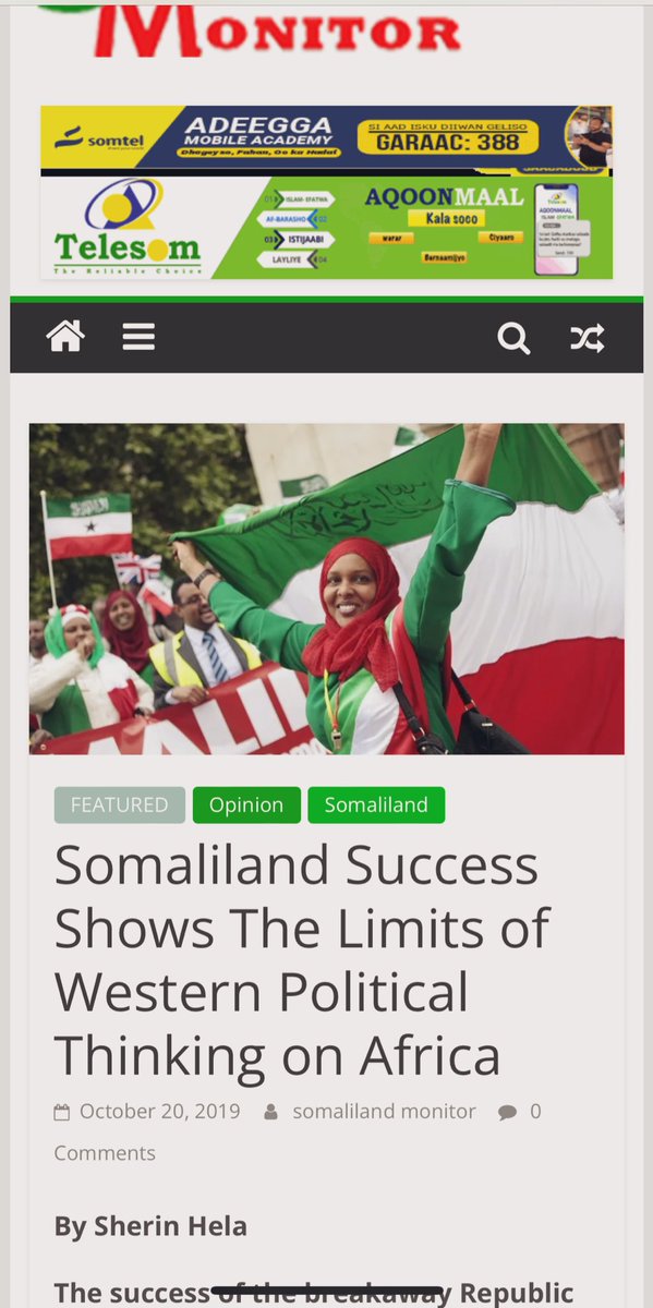 ووقعت على منفذ وقاعدة عسكرية مع صومالي لاند، النهاردة،في2019 كتبت عن صومالي لاند مقال منشور في الاهرام ويكلي عن تجربة صومالي لاند السياسية،احدث وقتها بعض الجدل