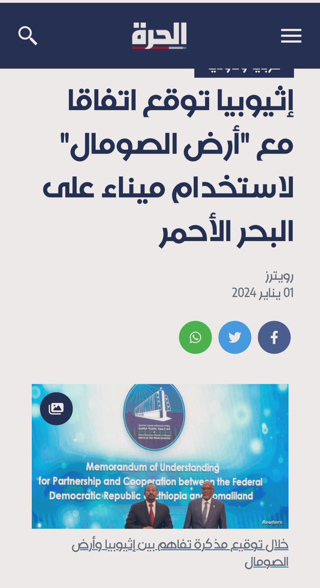 طبعا دا تطور خطير خلى الحكومة الصومالية تعلن عن عقد اجتماع طارئ على خلفية مذكرة التفاهم اللي تم توقيعها بين إثيوبيا وصوماليلاند.