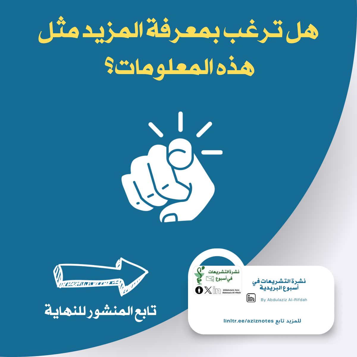 للاشتراك في نشرة التشريعات في اسبوع البريدية يمكنك ذلك الان عبر الرابط 👇🏻