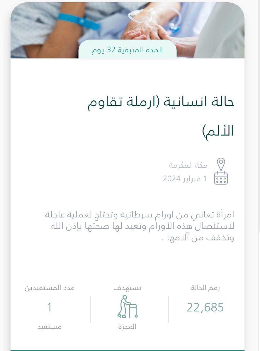 لامرأة تعاني من السرطان وتحتاج لعملية عاجلة لاستئصال اورام سرطانية لانقاذ حياتها