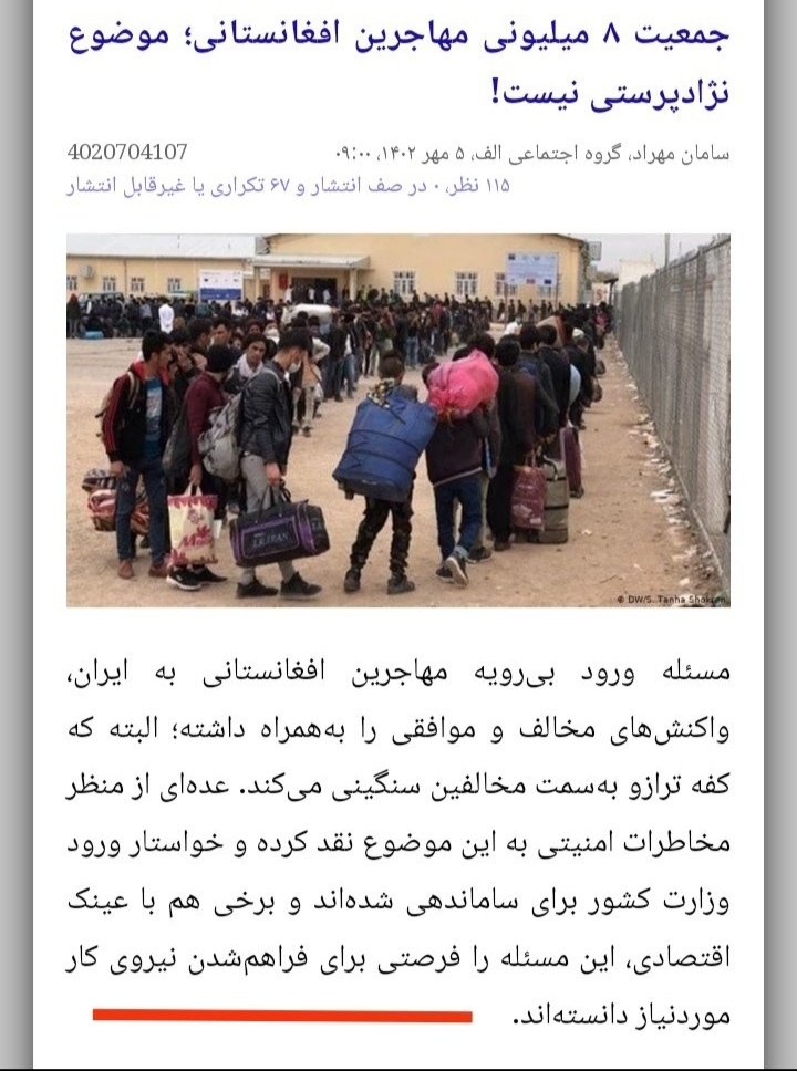یک دلیل دیگر بر چرایی #اخراج_افغانی_مطالبه_ملی