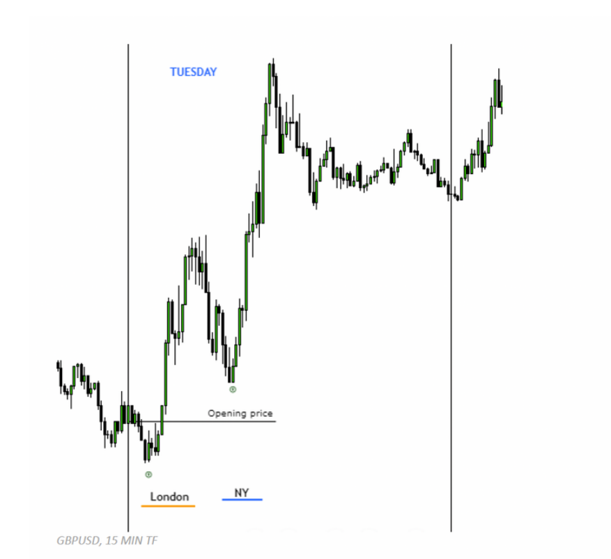 - Happens during the London session. New York session will eventually give a retracement to continue with