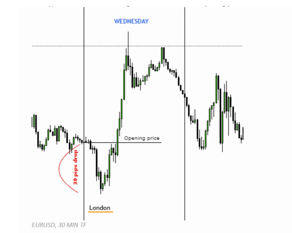 - Mostly, it will give a drop of a about 15 to 30 pips from the daily opening price during the London session.