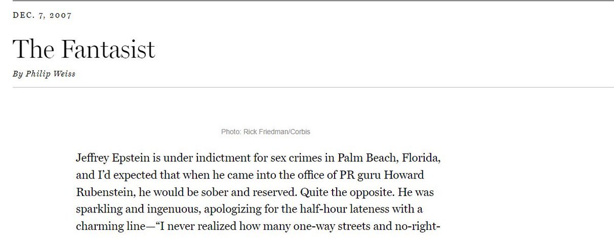 لم يكن هذا الثري إلا الملياردير جيفري إبستين صاحب الستين عاماً حينذاك، ولم يكن هذا البلاغ إلا واحداً من بين عشرات البلاغات التي تقدمت به أسر قاصرات ضده متهمين إياه بالاعتداء على بناتهن واستغلالهن جنسياً، لكن سطوة جيفري وسلطته كانت نافذة بحيث عطلت أي تحقيق ضده.