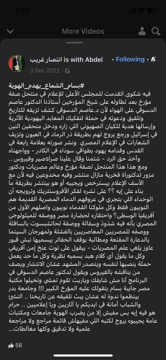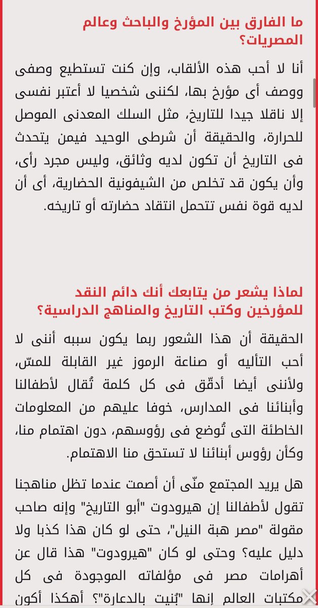 لقيت السيد المبجل بيهاجم أي حد يتكلم في التاريخ المصري وواخده ملكية حصرية!