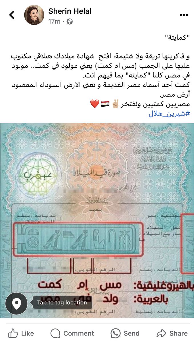 ادعاءته بتخدم أجندةالافروسنتريك مباشرةوبلا مواربة لأن هما كمان بيقولوا إن مصر بتعترف بهويتها السوداءمن كمت"الأرض السوداء"