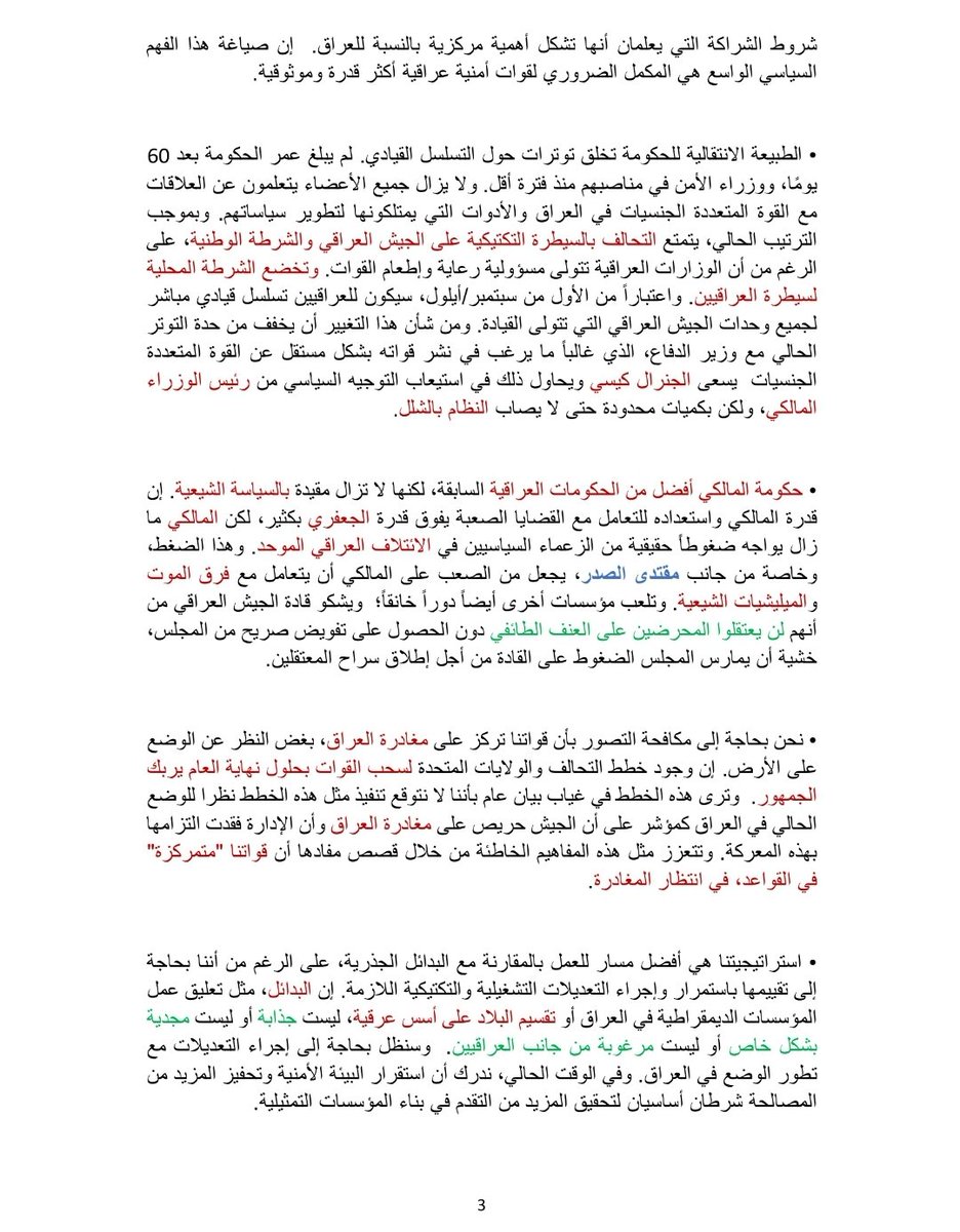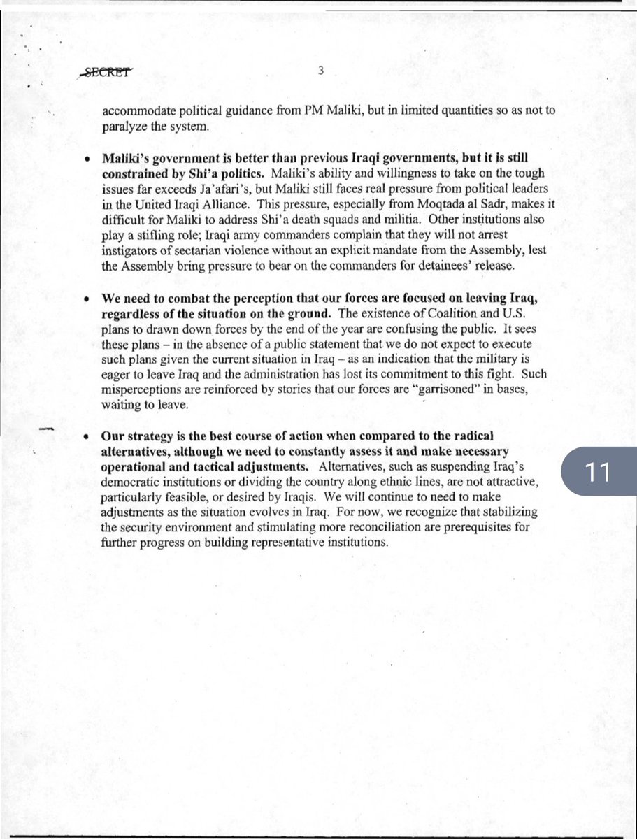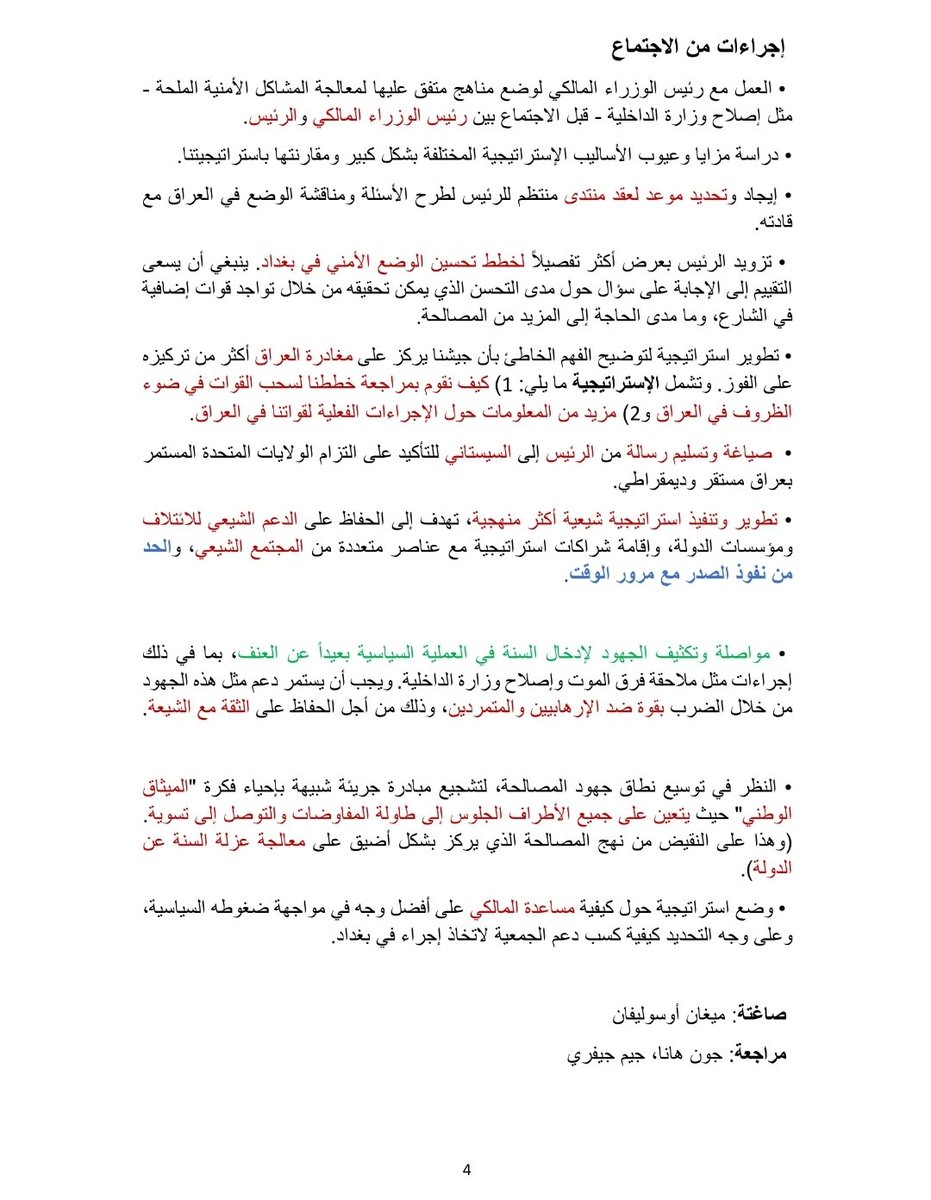 التغريدة الاولى سري/ ملخص النقاش حول أستراتيجية العراق (الستراتيجية المتبعة من قبل الأمريكان لدعم حكومة المالكي).