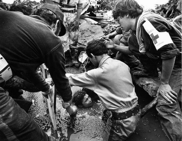 كان من الصعوبة تحرير ساقيها دون كسرها واكتشف الغواصون في وقت لاحق أن ساقيها كانت محاصرة تحت كومة من الطوب وأن جثة عمتها كانت تحت قدميها وقد لفت عمتها الميتة ذراعيها حول ساقيها.