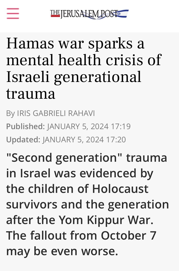 إن احتدام القتال، والمحن الرهيبة في 7 أكتوبر تخبرنا أن إسرائيل تواجه أزمة صحة عقلية لم نعرفها من قبل".