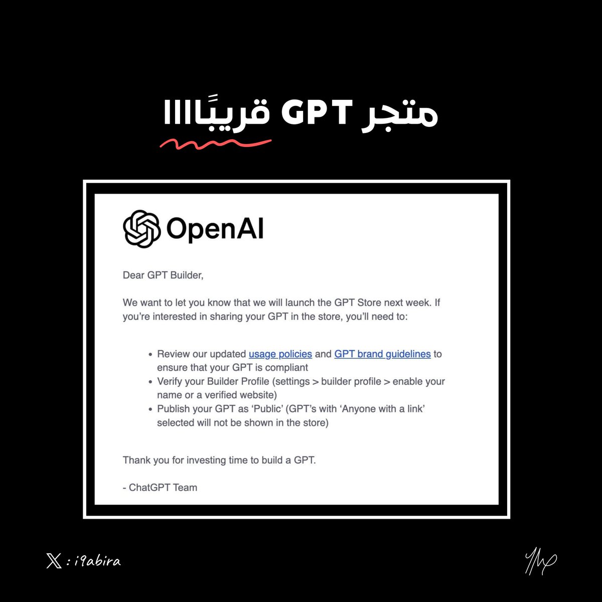 يعني متجر GPT راح يكون فيه كمية كبيرة من نماذج GPT المختلفة.