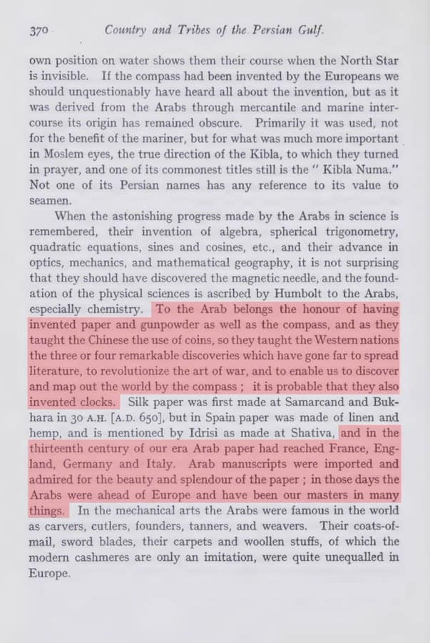 ودفعهم للاكتشاف والاستكشاف البحري إلى حدود الكرة الأرضية، جاعلين للتجارة امتداد على نطاق واسع مع حدود القارات الثلاث، أوروبا وآسيا وأفريقيا“.
