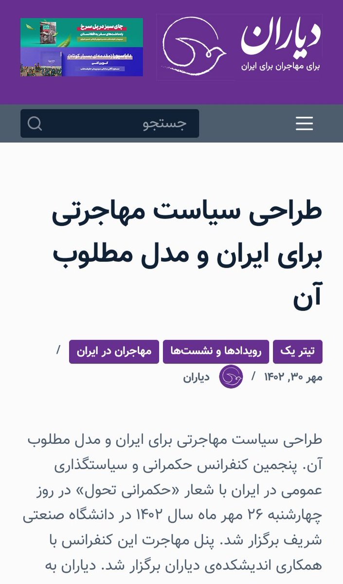پنل «ضرورت طراحی سیاست مهاجرتی برای ایران و مدل مطلوب آن» در سالن کنفرانس پژوهشکده سیاستگذاری دانش...