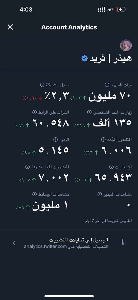 وماشاء الله هذي احصائيات حسابي في اسبوع بس 🚨 ..