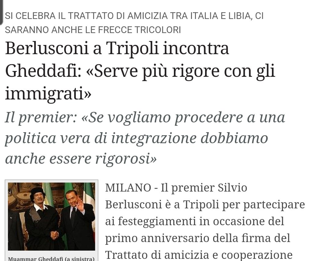 La #punizione per l'Italia è severa. La #Libia socialista e italiana viene balcanizzata. E Londra vi mette le basi per la partenza degli africani maschi in età militare #demonetizzati con cui fa invadere l'Italia #occupata (colpa del buzzurro romagnolo) e costretta a #sorridere.