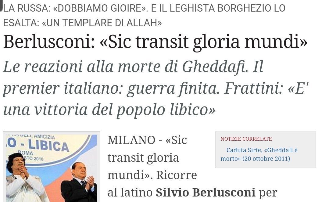 Silvio è finito. Si volta solo quando sente l'unico a parlare da uomo, il compagno #Borghezio: "Muore un grande leader, un vero #rivoluzionario non confondibile con i nuovi dirigenti libici portati al potere dalle #baionette di Londra e dalle multinazionali del petrolio"/6