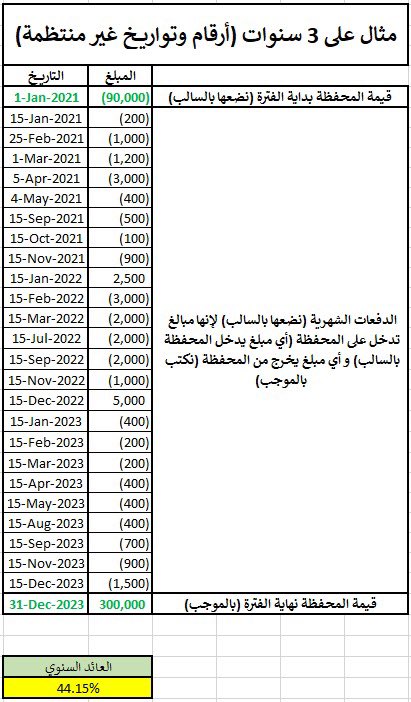 لكن في حال المستثمر يضخ أو يسحب أموال من المحفظة فهنا يصعب حساب العائد