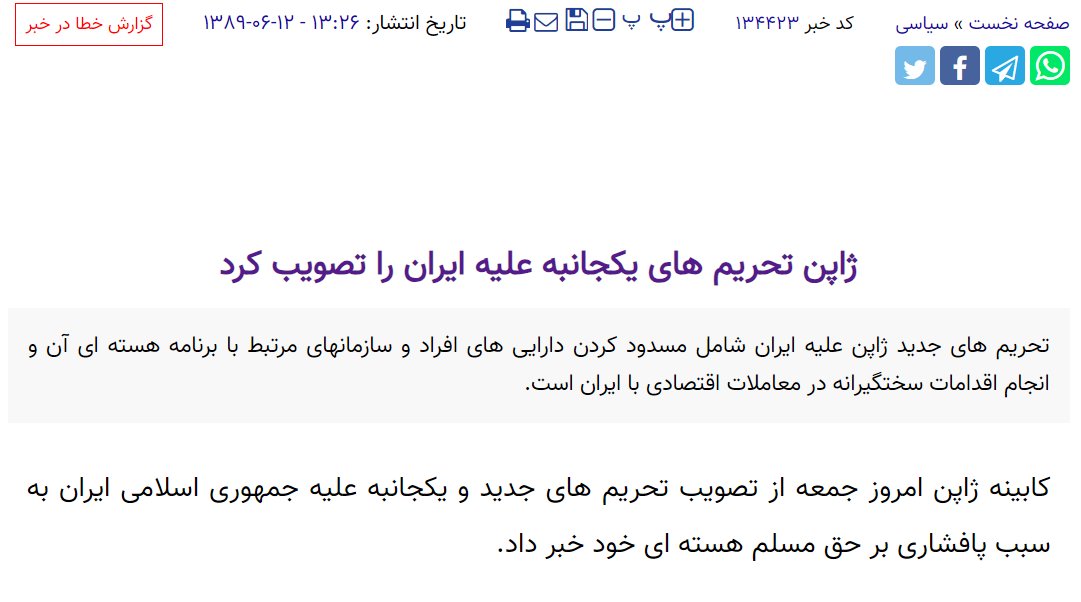 سخنگوی وزارت خارجه ایران درباره موضع ژاپن در بیانیه قاهره: اشاره به جزای در بیانیه پایانی نشست مذکور...