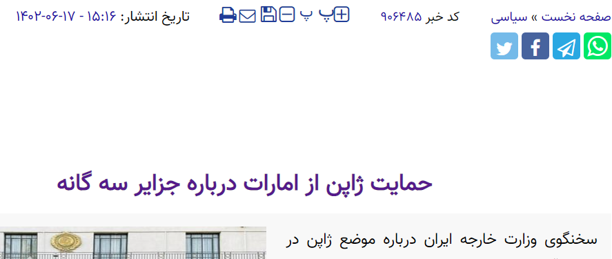 حمایت ژاپن از امارات درباره جزایر سه گانه
