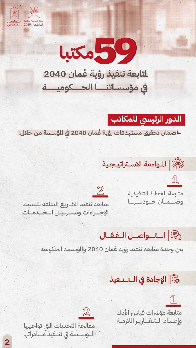 🔻ولضمان تنفيذ الخطط ومراجعتها تم انشاء وحدة متابعة تنفيذ رؤية عمان ٢٠٤٠: