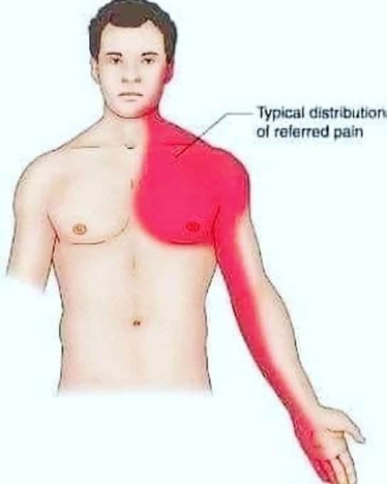 3 - فجأةً تصاب بألم شديد في صدرك يمتد الى ذراعك وفكك. وانت على بعد 5 كم فقط من المستشفى القريب من منزلك