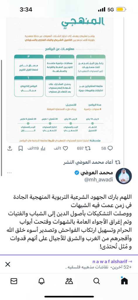 ٦-لا هذه الفوضى حيث يرمى بالشباب والفتيات ليضحوا طلبة عند حركيين متطرفين سبق أن أدينوا في بلادهم بتهم الإرهاب والتطرف، ليصنعوا لأنفسهم أمجاداً زائفة بين أحداث أسنان، لا خبرة لديهم ولا معيار في التقييم لما يتلقونه منهم.