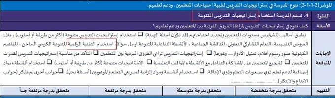 أثناء زيارة فريق #التقويم_الذاتي (الخارجي) للمعلم في الصف يتم قياس عدد من المؤشرات ومنها