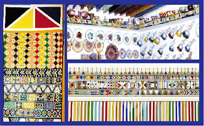 4 ـ التقطيع العمري: خطوط رأسية متوازية ومتقاربة تمثل قاعدة ينطلق منها خيال الفنانة إلى الختام أو الحظية. ويمكن اجتماع كل هذه الأنواع في جدار أو في بترة.