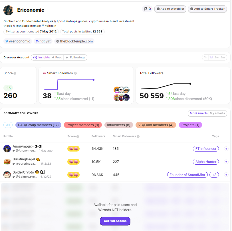 Moni has a database with most of the influential crypto profiles (aka Smart Followers).