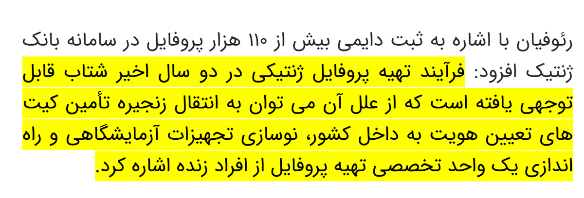 بر اساس مصوبات هیئت امنای بانک، هدف بعدی بانک هویت ژنتیک پس از ثبت اطلاعات مجرمان، جمع آوری و بارگذا...
