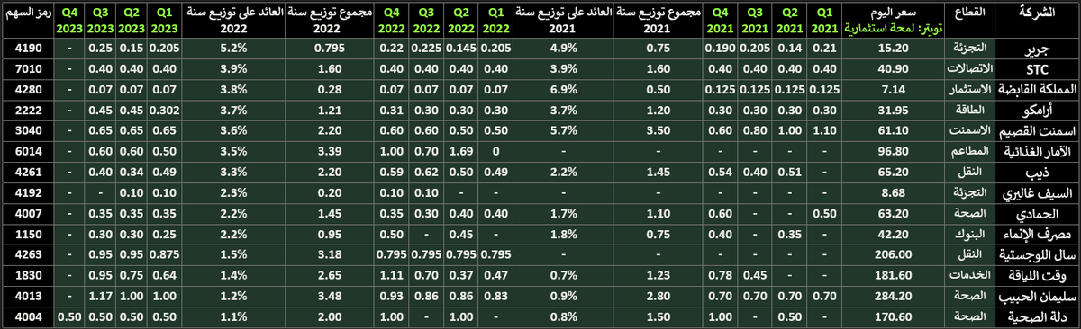 تحت هالتغريدة توزيع كل ربع للشركات التي توزع ربع سنوي...