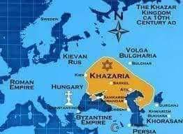 وفي عام 650 ميلادية: زرعت عصابات المافيا الخزرية – ذات الأصول التركية – الخزر – – اليهود الغربيين كما يطلقون على أنفسهم اليوم…زرعوهم قديماً في منتصف طريق الحرير-أهم طرق التجارة العالمية آنذاك….زرعوهم في أرض محتلة و منهوبة و أقاموا عليها دولتهم..الخزر