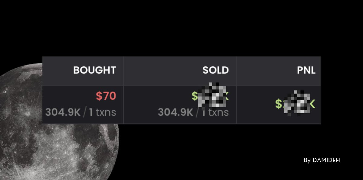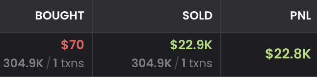 He got in below $40k Mcap and took first profit at $326k Mcap.