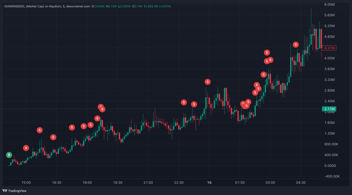 ⎆ #DIAMOND’s momentum remained strong until ATH at $5.85 Mcap in 15 hours.