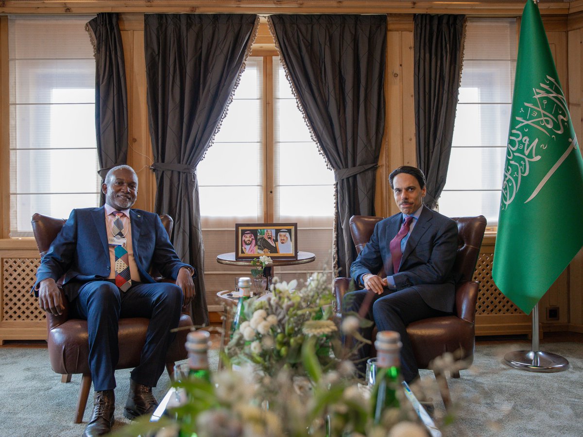 #دافوس | سمو وزير الخارجية الأمير #فيصل_بن_فرحان @FaisalbinFarhan يلتقي معالي وزير خارجية جمهورية نيجيريا الاتحادية يوسف مايتاما توجار، وذلك على هامش الاجتماع السنوي للمنتدى الاقتصادي العالمي 2024.