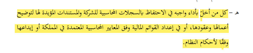 ولا يعني ذلك ايراد جميع التزامات المدير فإن التزامات المدير منصوص عليها في نظام الشركات والانظمة ذات العلاقة وإنما المقصد هو إيراد الاتزامات التي يكثر مخالفتها من قبل مدراء الشركات المتعثرة والمهملة.
