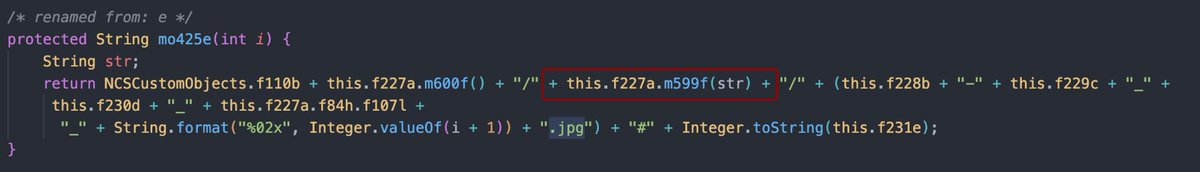 ماعلينا نكمل، دام ماحصلنا صيغة الصورة من البيانات اللي يرجعها الباك اند وحنا متأكدين ان التطبيق يبني الرابط فخليني ادور على الفنكشن اللي تبني الرابط، فبحثت بالكود عن .jpg عشاني متاكد انه hardcoded وحصلت الفنكشن 🙌