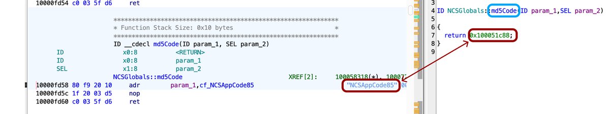 الجميل بالموضع الحين اعرف وش ادور عليه، كل اللي ابيه اني اعرف وش جالس ينرسل للفنكشن اللي تسوي md5 hashing. فأول شي بحثت عنه هي البهارات اللي كان حاطها المطور للهاش (NCSAppCode85) وحصلتها ✅