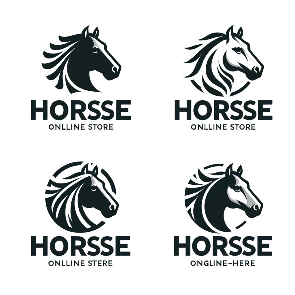 اعطني ٤ نماذج لشعار [متجر الكتروني] [جمل]، مسطح، رسومي، فيكتور، [سدو بخلفية بيضاء ]، مساحة سلبية، اقل التفاصيل، احترافي، عملي