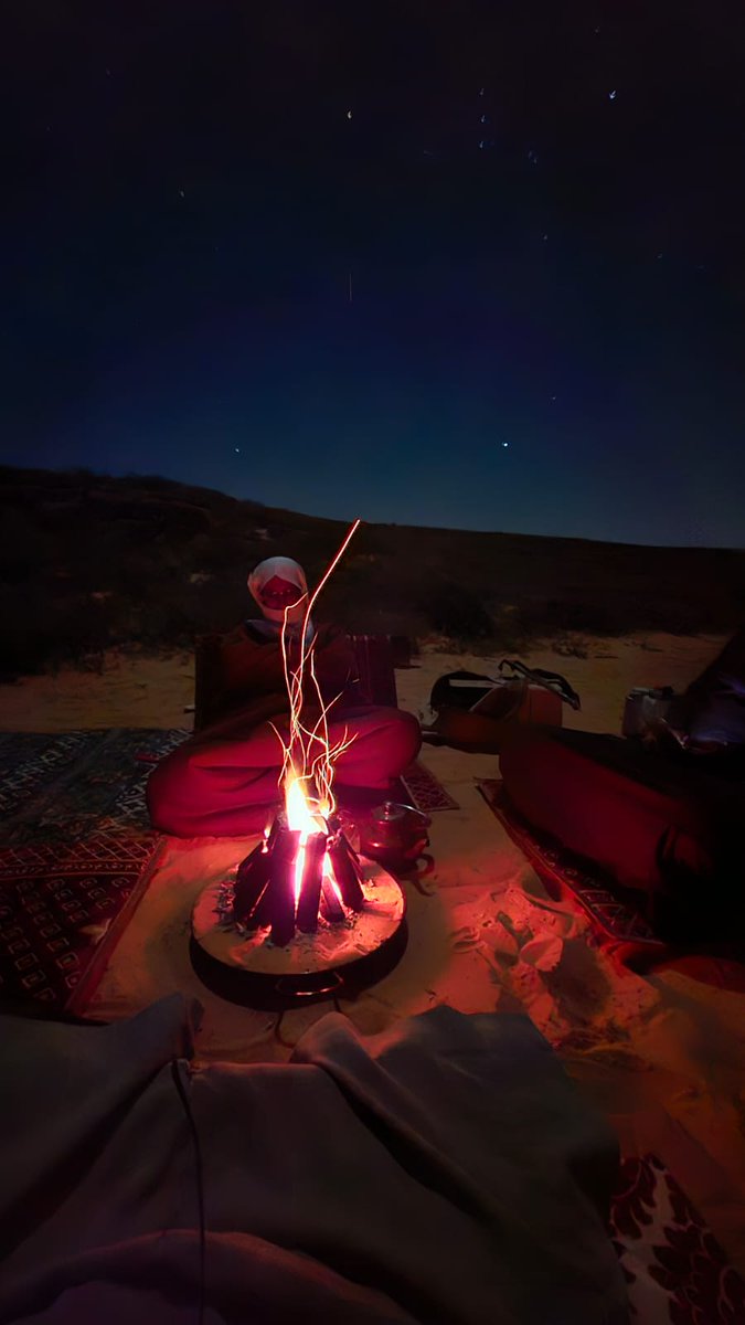 هدوء المكان الرهيب، والصمت العجيب، الذي لو سقطت فيه إبرة على حجر لَسمعتها كما يقال، زاد الجلسة متعة وصفاء، وجمّل ذلك نعمة الأمن والأمان التي نعيشها في هذه البلاد بحمد الله، فقد أمضينا وحدنا ثلاثة ليالٍ في هذه الصحراء الخالية، التي تبعد عشرات الأكيال عن أقرب مدينة أو قرية، لا نخشى إلا الله، فأسأل الله أن يجزي ولاة أمرنا وجنودنا ورجال أمننا خير الجزاء..