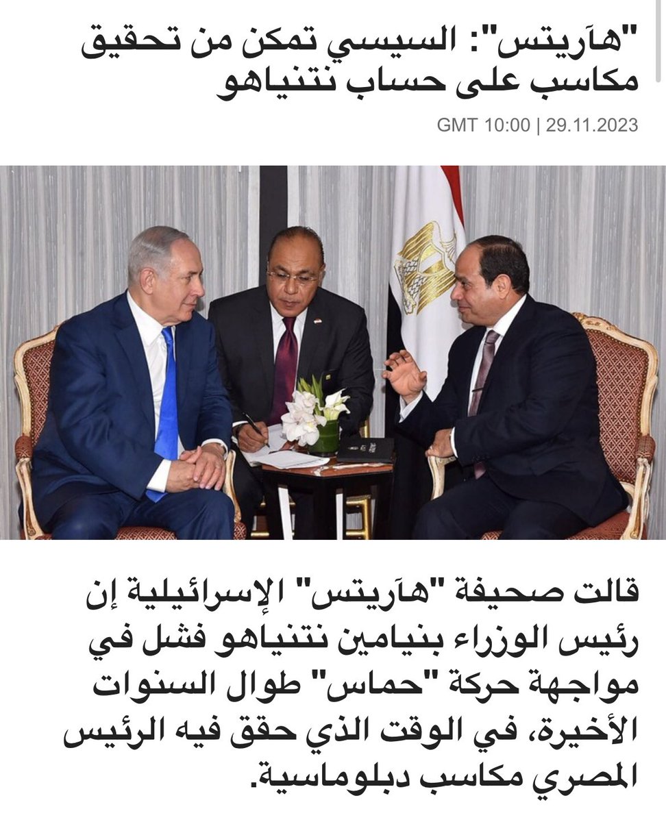 في تحقيق الأهداف اللي اعلنها امام المجتمع الاسرائيلي اللي لسة له رهاين عند حماس معرفش يقوم بتحريرها الجيش الإسرائيلي من غير عملية التفاوض اللي بتشارك فيها مصر بالوساطة والتنفيذ. تعويل نتنياهو على فكرة إن مصر طرف "غير ثرثار ولا يعبأ بالرد الإعلامي" سابقا كان رهان خاطئ!