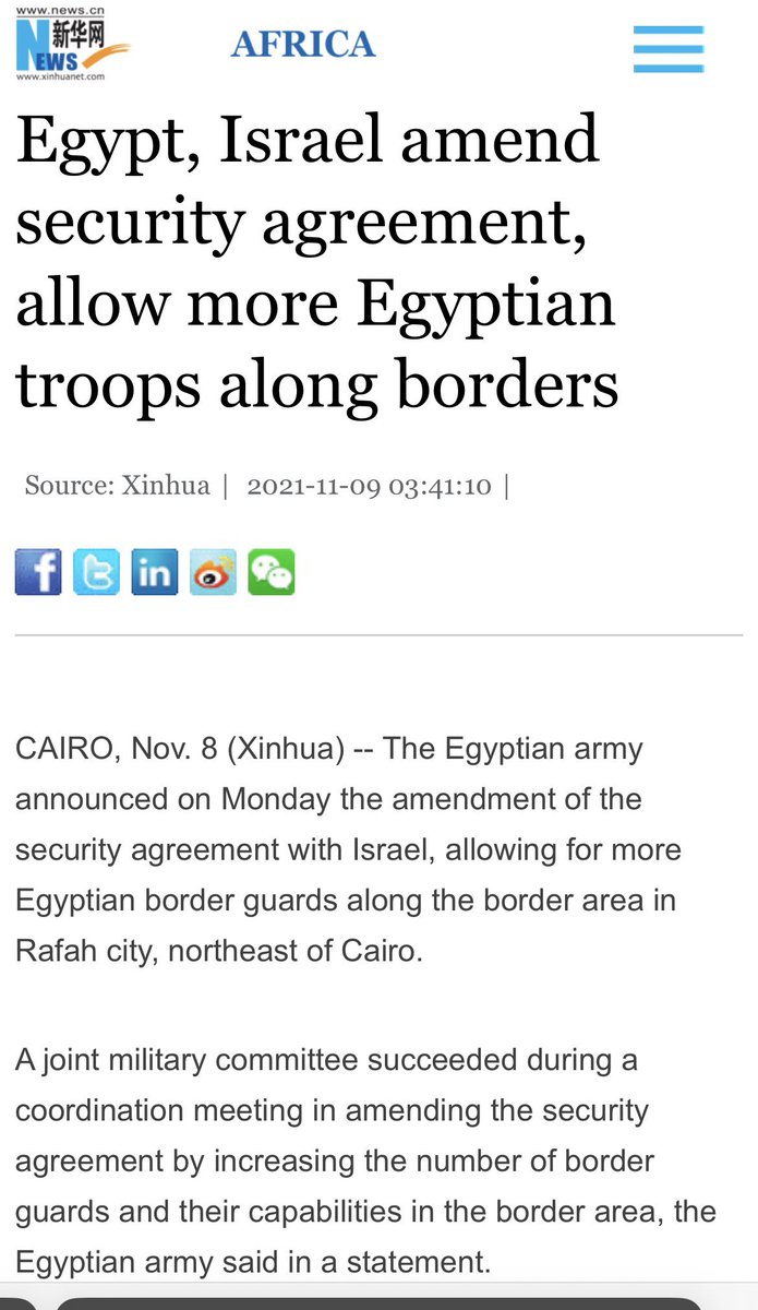 لاحتلال ممر صلاح الدين (فيلادلفيا) في قطاع غزة على طول الحدود مع مصر، بالمخالفة للاتفاقيات والبروتوكولات الأمنية الموقعة بينها وبين مصر، و أي تحرك إسرائيلي في هذا الاتجاه سيؤدي إلى تهديد خطير وجدي للعلاقات المصرية-الإسرائيلية.